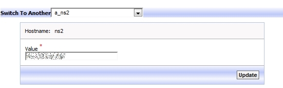 Em Value informe o outro endereço IP do seu servidor. Depois clique em Update para gravar a configuração. O Kloxo voltará para a tela anterior e você poderá reparar que o IP do ns2 agora está diferente do ns1.